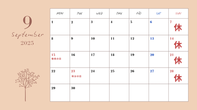 本店 9月休みのご案内