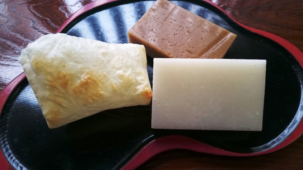 獅子舞柄包装の栗どら焼き、餅、新之助米の限定三色だんご(焼き芋あん・粒栗あん・すりごま)などご用意いたします。